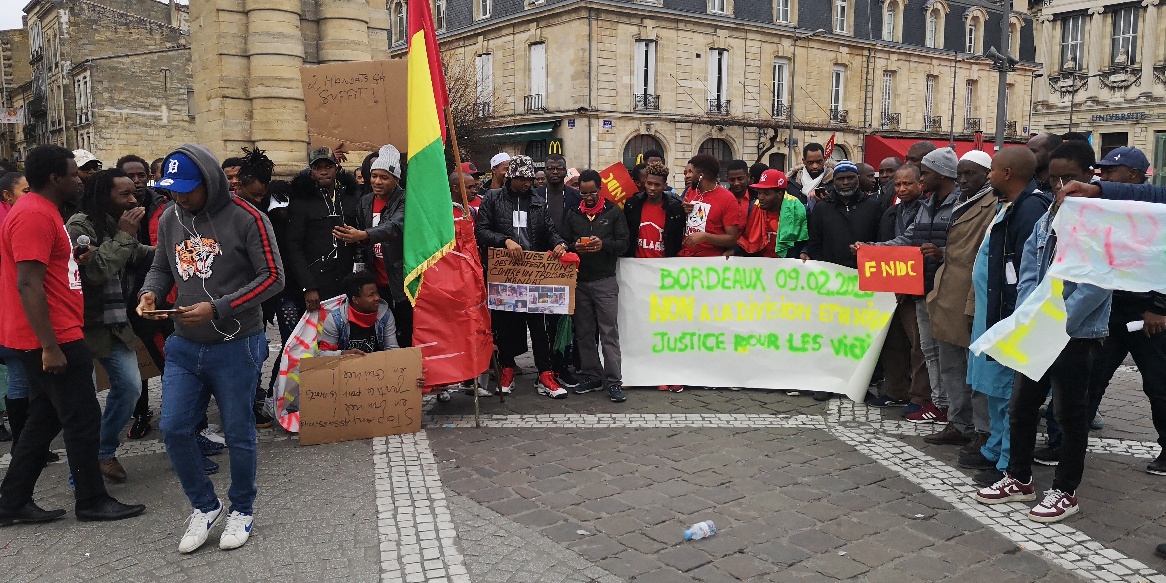 Dimanche 09 février 2020 : C’est sur la place de la victoire à Bordeaux que les membres de la diaspora guinéenne se sont donnés rendez-vous pour dénoncer, avec toute leur force, leur désaccord à la modification de la constitution, qui ouvrirait les portes à Alpha Condé pour briquer un troisième mandat.