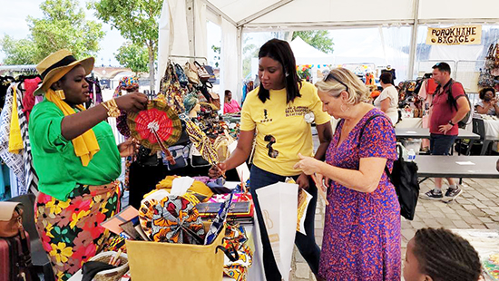 L’ambiance de ces 3 jours de la Diaspora Africaine baigne dans une ambiance de grande tranquillité dans l’animation, contrairement à l’idée de confusion bruyante qu’évoque le mot foire. La qualité de l’organisation, les animations musicales et la présence de nombreuses familles expliquent peut-être cette sensation de rencontre populaire et sereine. Exposantes comme touristes ont dansé sous le rythme du tambour major Modou Mbaye.